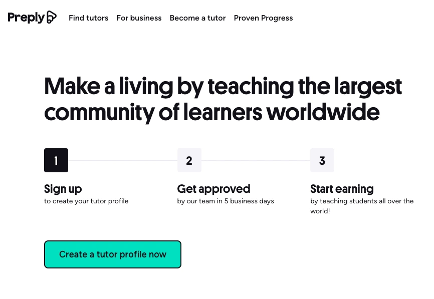 Tutors create a profile, set prices, and accept students. Preply provides a help center section for tutors that covers profile setup and teaching basics. Source: Preply Help for Tutors.